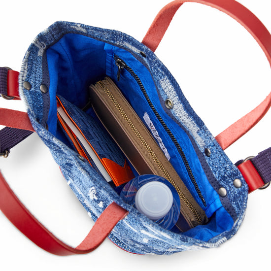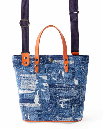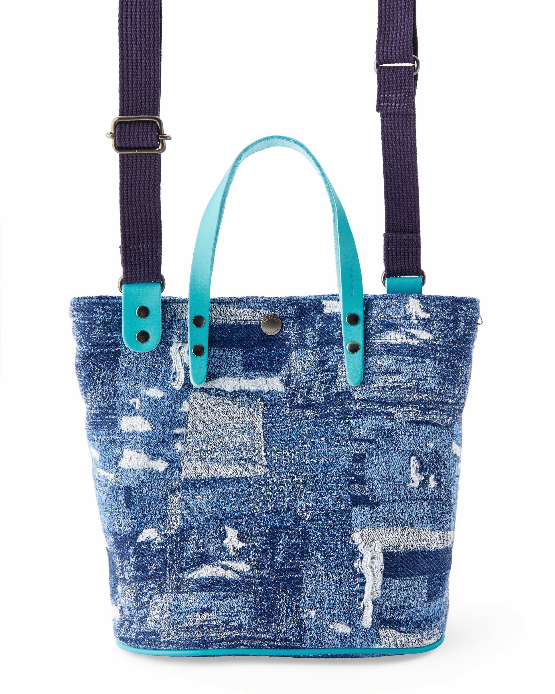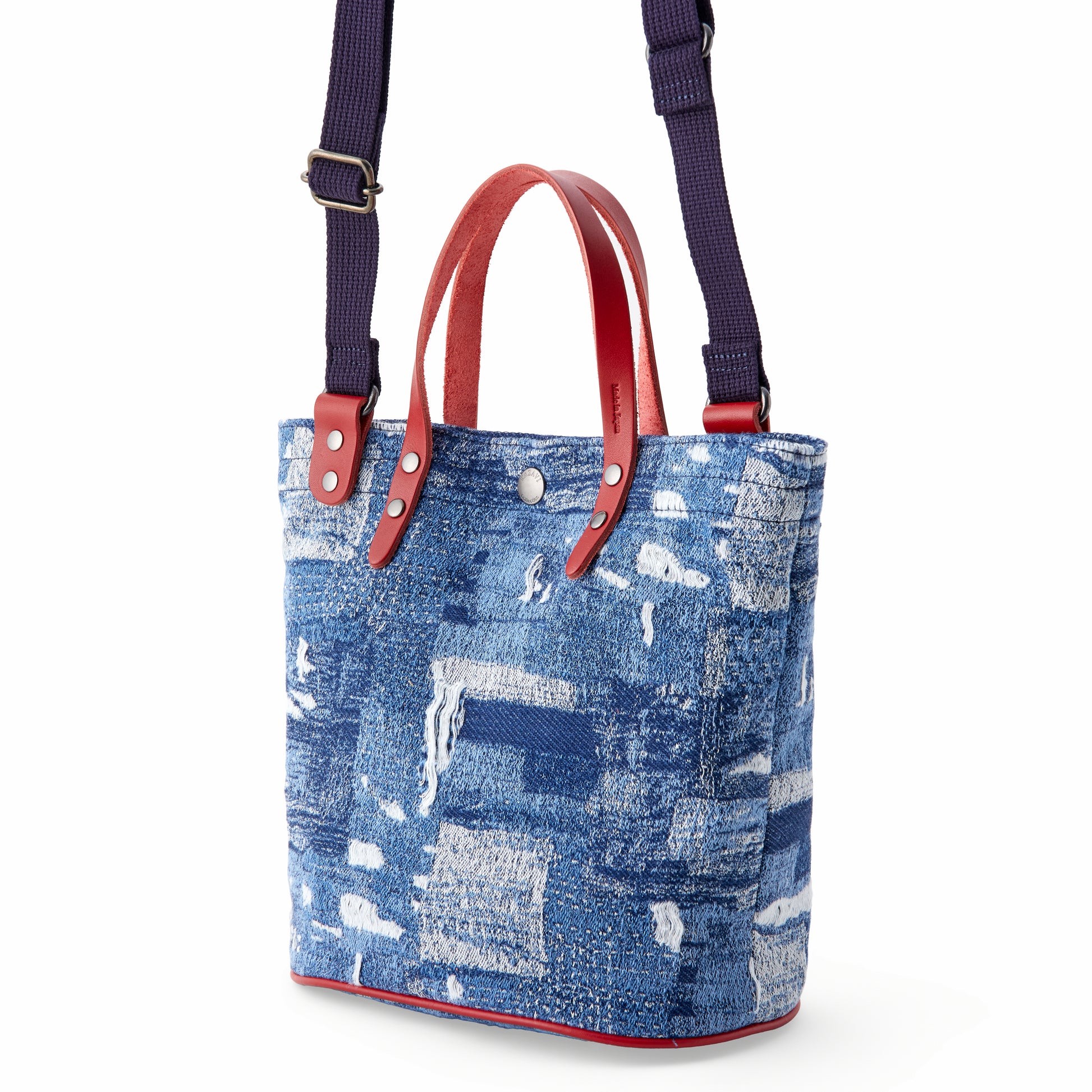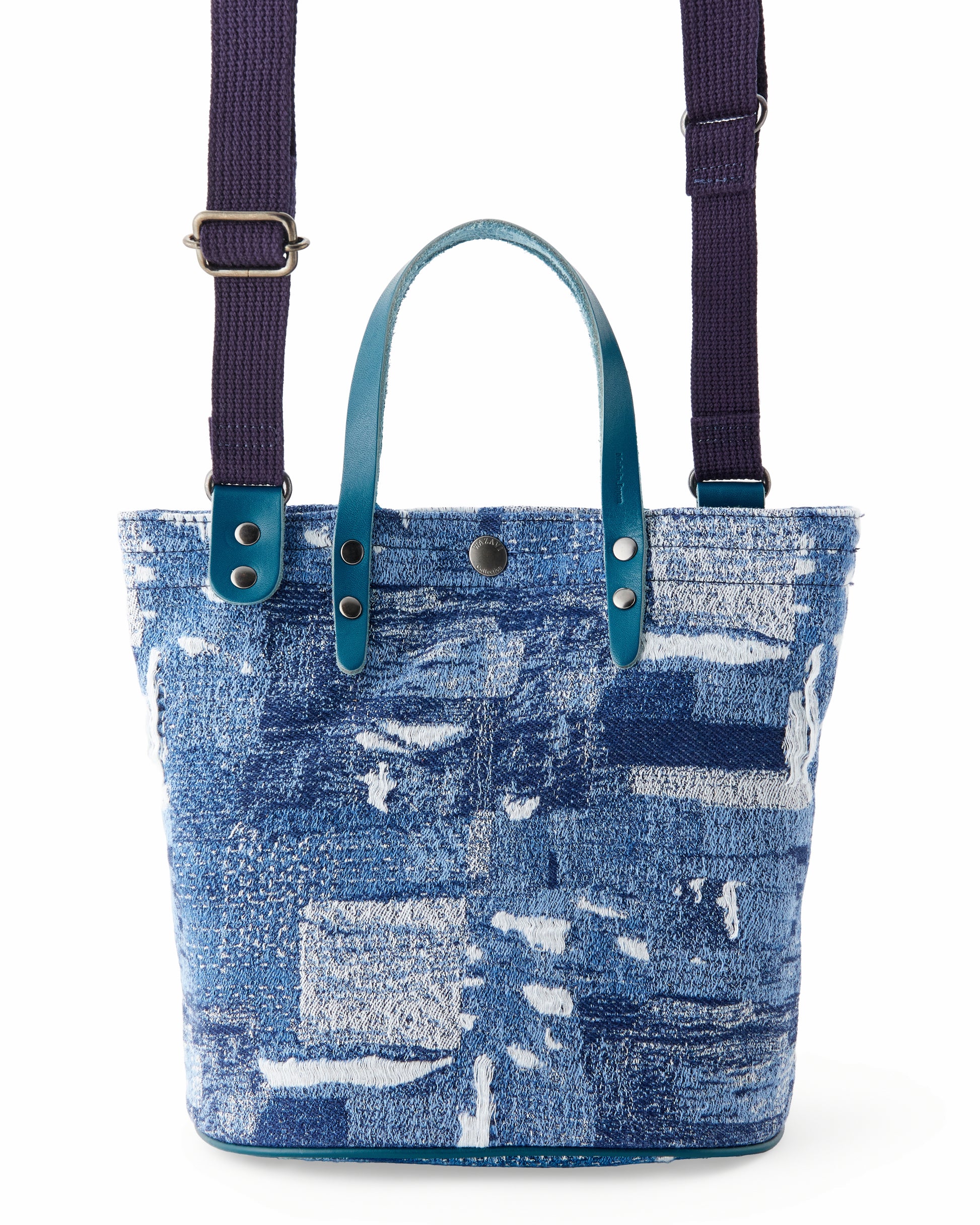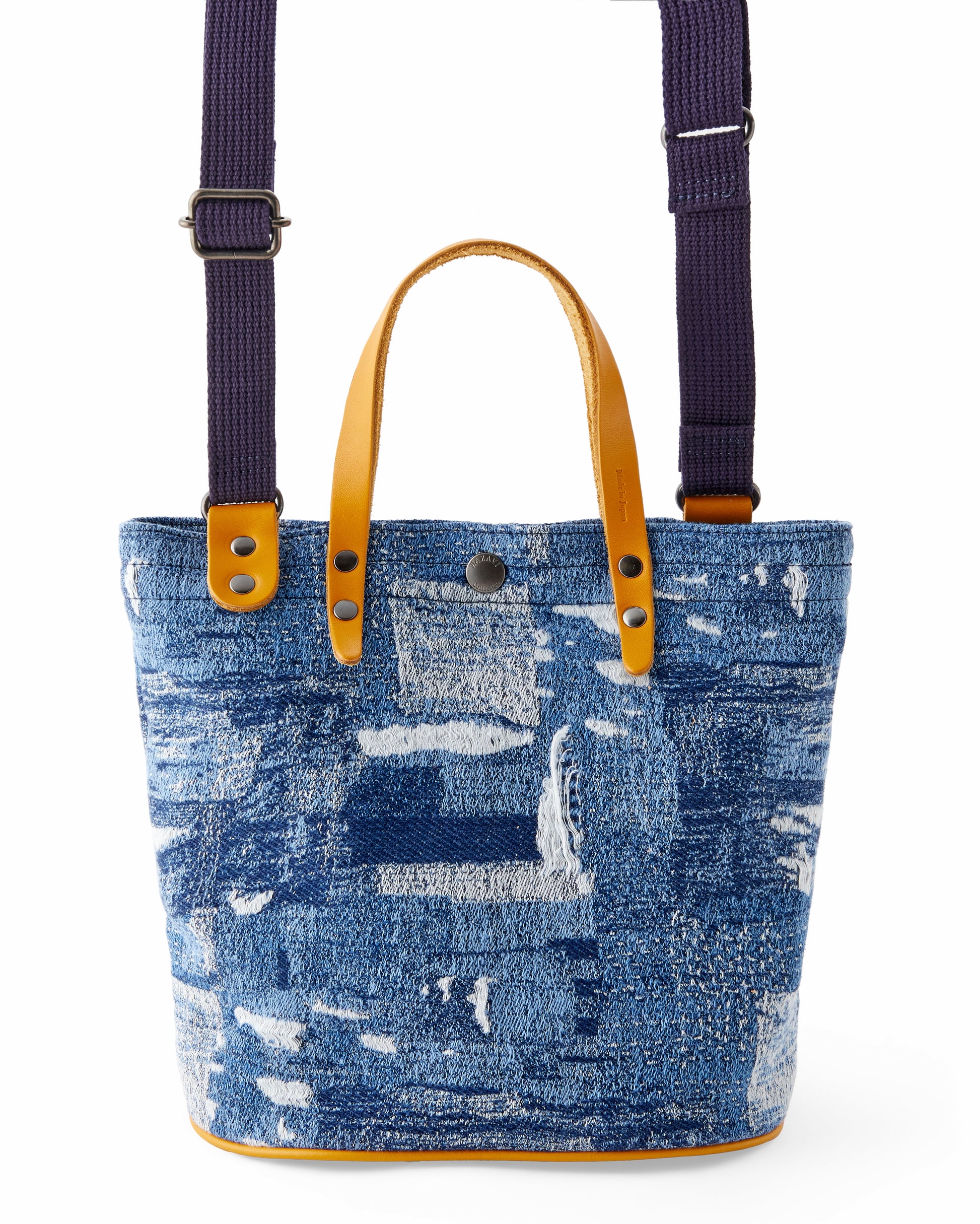 襤褸(ぼろ)に着想を得たBORO Denimを使用した、コンパクトなトートポシェット。